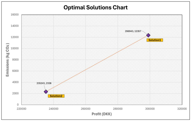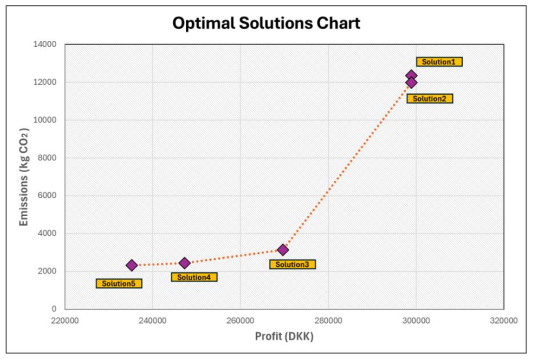 This work optimized Power-to-X (PtX) operations in a Danish wind farm, balancing profitability and emissions through single and multi-objective optimization. The analysis was conducted through secondary data and an optimization model developed in Solver in order to evaluate operational scenarios. Among all the different evaluated solutions, Solution 3 emerged as optimal, reducing CO2 emissions to 3146 kg while maintaining 90% of maximum profit (269,706 DKK). It allocated energy efficiently—745 MWh to the grid, 83 MWh to hydrogen (producing 1479 kg of green hydrogen), and 828 MWh to storage, with zero curtailment. Compared to profit-maximizing (Solution 1: 298,943 DKK, 12,357 kg CO2) and emission-minimizing (Solution 5: 235,244 DKK, 2336 kg CO2) alternatives, Solution 3 offers a sustainable compromise, supporting decarbonization goals without significant economic trade-offs. The findings highlight replicable strategies for PtX systems in renewable energy integration for future projects.