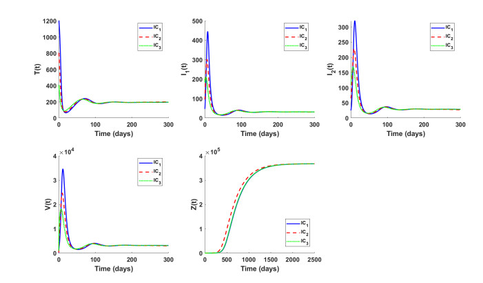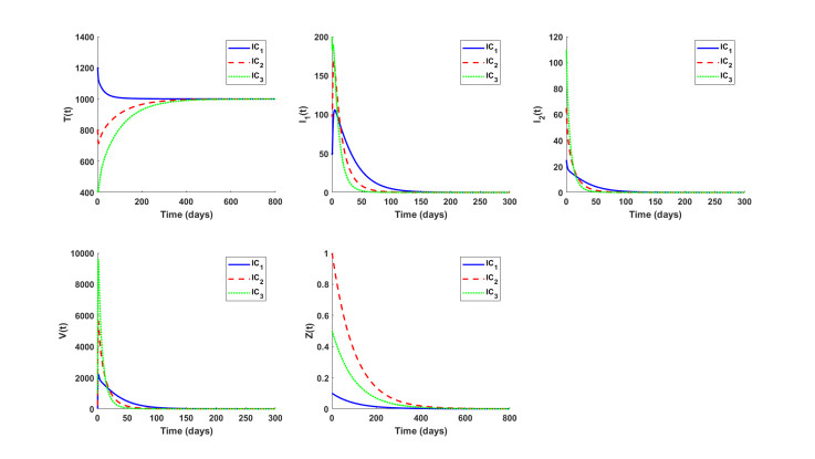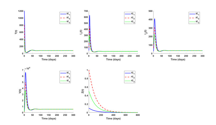 Citation: Weimiao Zheng, Juan Wang, Xia Wang. Dynamics of an HIV model with immune response and two types of infected cells[J]. AIMS Mathematics, 2026, 11(1): 558-577. doi: 10.3934/math.2026024