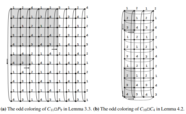 Citation: Baojie Liu, Qihang Dou, Fan Yang. The odd coloring of some Cartesian product graphs[J]. AIMS Mathematics, 2026, 11(1): 1311-1331. doi: 10.3934/math.2026056