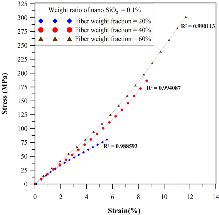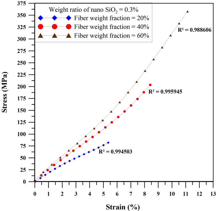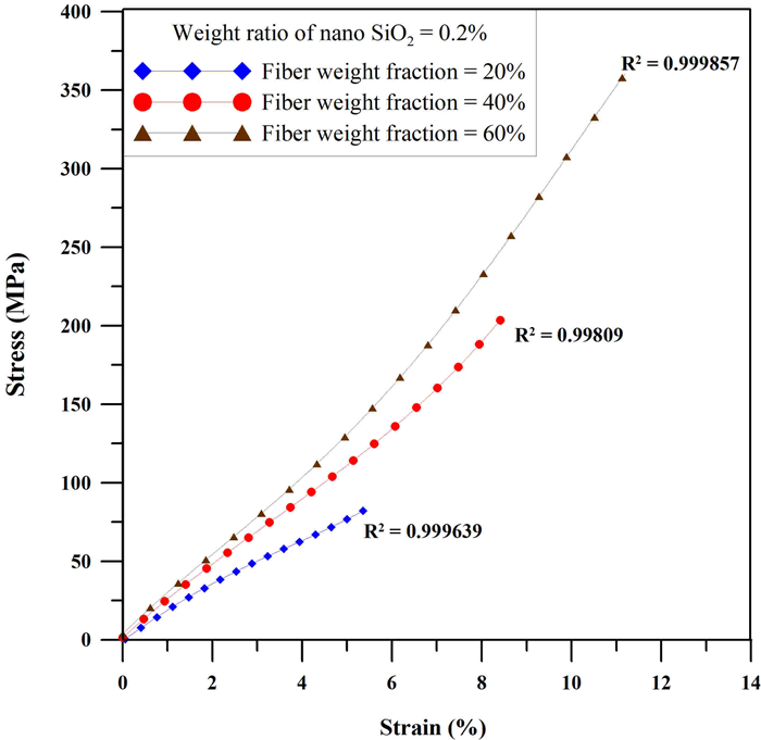 • The porously branched P-type nano silicon oxide (SiO2) utilized in this study, which has not been explored before in fiber composites, creates a balance between mechanical reinforcing and electrical insulating. Here, the carbon fiber weight fraction was varied from 20% to 60% with the addition of P-type SiO2 (15–20 nm, 0.1–0.3 wt.%). The porous morphology of the fibers and their branched structure result in high adhesion to the polyester matrix. A vacuum cast was used to minimize air bubbles in the composite during the manufacturing phase. Tensile characteristics (ASTM D3039) and electrical conductivity of the composites were defined, and the characterization of the composite microstructure was performed. The addition of 0.3% nano-SiO2 improved tensile strength by 87.4% at a carbon fiber weight fraction of 60%, and ductility was reduced. Specific resistance was reduced by 39% at a carbon fiber weight fraction of 20% with 0.3% SiO2. Scanning electron microscopy (SEM) analysis revealed that with 0.1% SiO2, the homogenization of the microstructures was enhanced, improving strength. Due to its porous structure and enhanced adhesion compared with conventional and hybrid silicon oxide systems, P-type SiO2 demonstrates potential for industrial applications in aviation, vehicles, or biomedical materials.