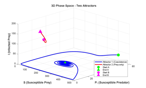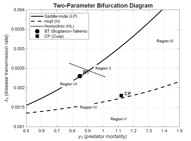 Citation: Faisal Muteb K. Almalki, Ghaliah Alhamzi, Mona Bin-Asfour, Emad Solouma, Najat Almutairi, Ali Sarrah, Sayed Saber. Ecological and epidemiological thresholds in a predator–prey system with cross-infection: stability, bifurcations, and reaction-diffusion dynamics[J]. AIMS Mathematics, 2026, 11(3): 7695-7739. doi: 10.3934/math.2026317
