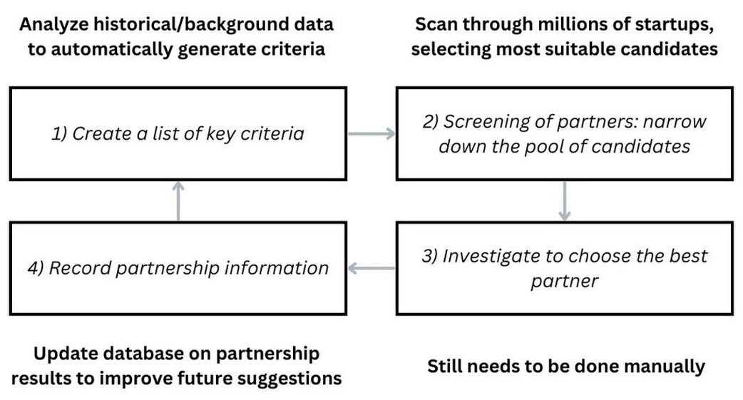 Traditional methods for identifying strategic partners often rely on human judgment and informal networks, which would likely cause poor, strongly-biased choices, and missed opportunities. In this study, we aimed to support partner selection through a machine learning approach using publicly available startup data. First, we addressed class imbalance using SMOTE and generated negative labels through heuristic clustering. A Logistic Regression model was then trained to classify high-potential startups based on features such as technological capabilities, funding phase, innovation hub association, founders' structure, and geographical proximity. As for the results, the model achieved solid performance with 88.2% accuracy, 80% precision, and an F1-score of 0.727. Key patterns showed that technology prowess had the most prominent impact on defining a 'high-potential' startup partner, closely followed by their funding stage and close geographical distance to the focal company. This study provides a replicable, data-driven framework to implement into the early partner screening stage for companies, especially SMEs, along with insights on selection criteria for startups.
