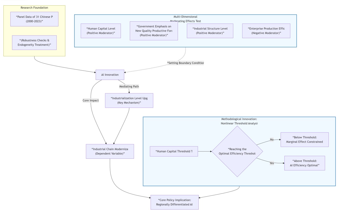 Based on the provincial panel data of China from 2000 to 2023, we systematically examined the impact effect and internal mechanism of artificial intelligence (AI) innovation on the alternate with industrial upgrading. The empirical results showed that AI innovation has a significant promoting effect on the alternate with industrial upgrading, and this conclusion remains valid after a series of robustness tests and endogeneity treatments. This study advances the literature in three major ways: First, we integrated a nonlinear threshold framework with a multi-dimensional moderation analysis, enabling a more nuanced understanding of how AI innovation affects industrial chain modernization under heterogeneous institutional and factor conditions. Second, we empirically identified the industrialization level as a partial mediating mechanism, thereby clarifying the internal transmission path from AI innovation to structural upgrading. Third, by uncovering a negative moderating role of enterprise productivity, the study revealed an 'efficiency trap' that challenges the conventional assumption that higher productivity always enhances technological returns.