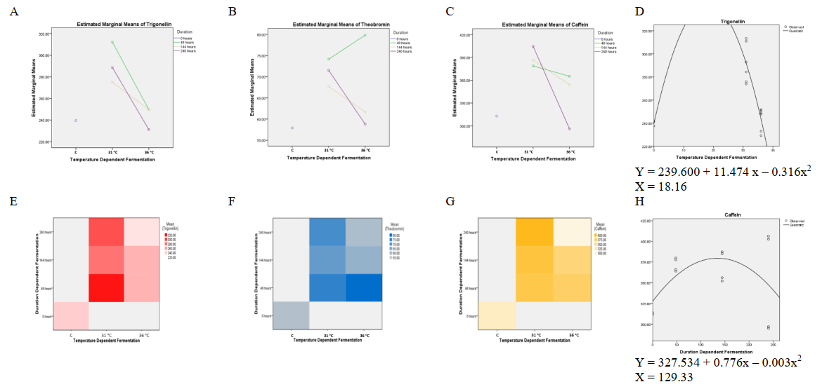 In this study, we investigated the effects of ohmic-heated carbonic maceration on the chemical composition (including bioactive compounds), aroma, and cup quality of Arabica coffee. Coffee cherries were fermented at two temperature levels (31 ℃ and 36 ℃) and three durations (48,144, and 240 hours) in an ohmic-heated fermenter under carbonic (CO2-rich, anaerobic) conditions. The coffee samples were analyzed using HPLC and GC-MS to identify bioactive and volatile compounds, and cupping tests were performed using the Specialty Coffee Association of America (SCAA) protocol. The results showed that increasing fermentation duration decreased 3-caffeoylquinic acid (3-CQA) and 4-CQA, while 5-CQA remained stable or increased at 36 ℃ for 240 hours. Trigonelline exhibited relative stability at low temperatures but declined at prolonged durations, particularly at 36 ℃. Caffeine concentrations peaked at intermediate durations before stabilizing. Sugar content generally decreased with increasing fermentation duration, with significantly lower levels observed after 10 days of fermentation. Principal component analysis of volatile compounds revealed distinct clustering patterns among treatments, with long fermentation durations positively correlated with the production of phenols, alcohols, pyrroles, benzenes, pyridines, and alkanes. Sensory evaluation using the SCAA protocol showed that four fermentation treatments provided slightly higher cupping scores (85.0–85.75) than the control (84.5), with flavor notes including nutty, flowery, lemony, brown sugar, spicy, fruity, and winey aromas. These findings indicated that Arabica coffee processed under ohmic-heated carbonic fermentation conditions exhibits measurable modulation of key chemical constituents, sugar content, and volatile composition, leading to improved cup quality and distinct sensory attributes within the studied processing conditions.