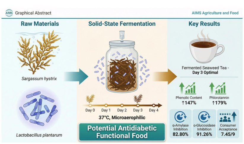 Citation: Khalishah Jasmine Putri Abdillah, Amir Husni, Masagus Muhammad Prima Putra, Siti Ari Budhiyanti. In vitro antidiabetic activity and consumer acceptance level of fermented brown seaweed Sargassum hystrix tea using Lactobacillus plantarum[J]. AIMS Agriculture and Food, 2026, 11(1): 274-289. doi: 10.3934/agrfood.2026014