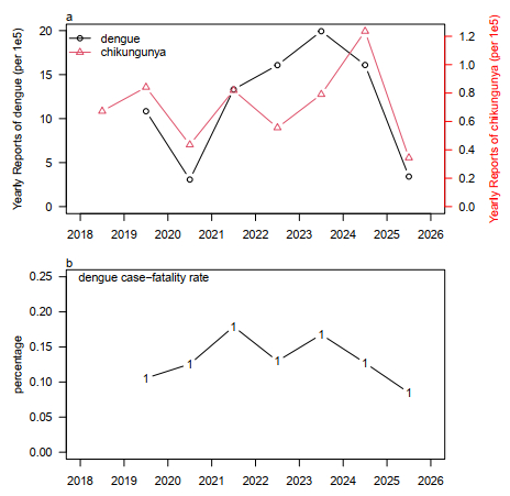 | [13] | Guangdong Provincial CDC, Guangdong Province Dengue Fever and other vector-borne infectious diseases monitoring weekly report (2025, Week 28), 2025. Available from: https://cdcp.gd.gov.cn/ywdt/tfggwssj/content/post_4745883.html |