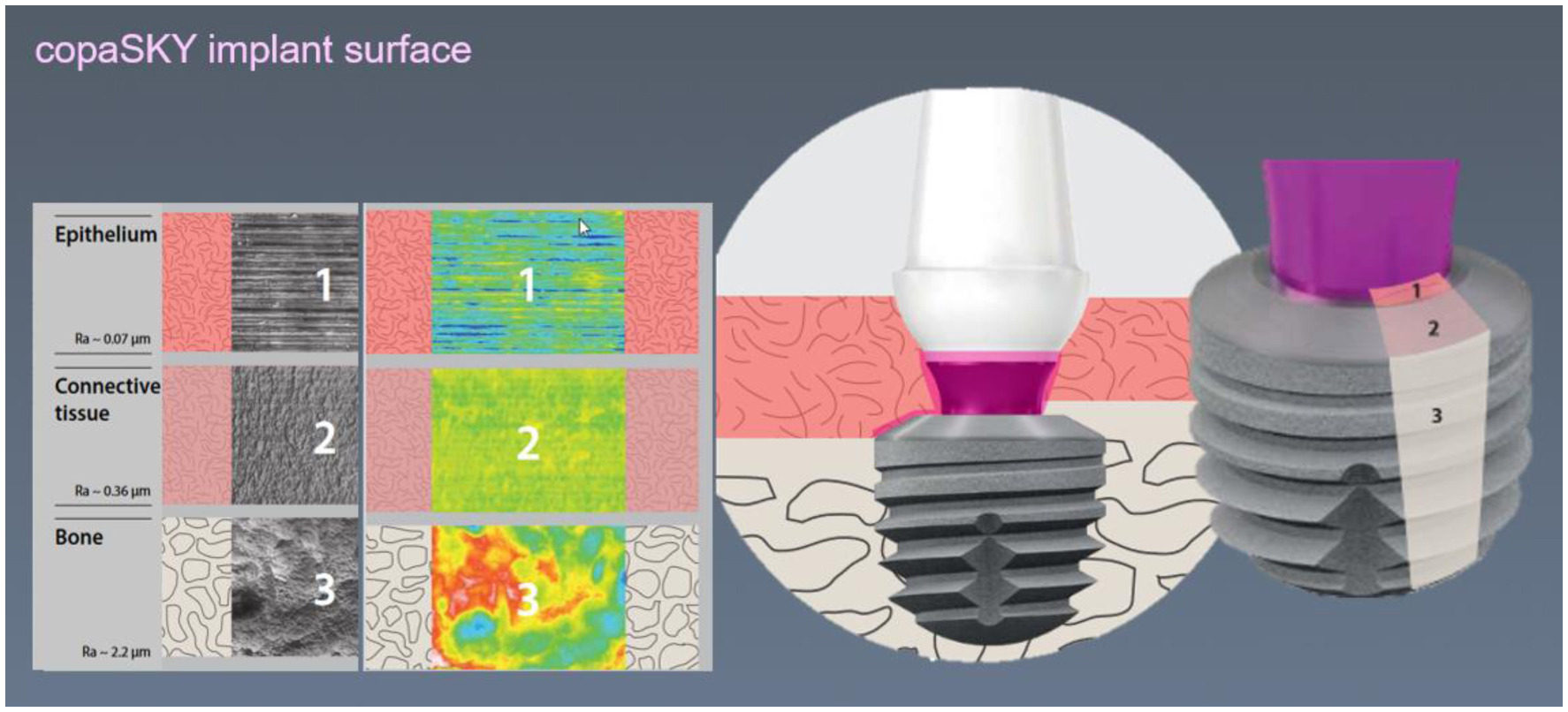 The primary purpose of this study was to determine the accuracy of micro-computed tomography (micro-CT) as a novel tool for the 3D analysis of bone density around dental implants in tibia rabbits. Six male New Zealand rabbits were used in our evaluation. One Copa SKY® (Bredent Medical GmbH & Co. K.G.) with a 3.5 mm diameter by 8.0 mm in length was placed within 12 tibia rabbits divided into two experimental groups: Group A (crestal placement) and Group B (sub-crestal placement). The animals were sacrificed at four weeks. Micro-CT evaluations showed a high amount of bone around all implants in the tibia rabbit bone. There was an increased formation of bone around the Copa SKY implants, mainly in the implants that were placed crestally. The most frequent density found in most implants was a medullary bone formation surrounding the implant; the density three (D3) was the most common type in all implants. The 3D model analysis revealed a mean bone volume (B.V.) of 31.24 ± 1.24% in crestal implants compared with the 43.12 ± 0.43% in sub-crestal implants. The mean actual contact implant to bone (B.I.C.) in the sub-crestal group was 51.76 ± 0.86%, compared to the 42.63 ± 0.75% in the crestal group. Compared to crestal implants, the Copa Sky implant placed sub-crestally allows for the formation of bone on top of the neck, thereby stimulating bone growth in tibia rabbits.