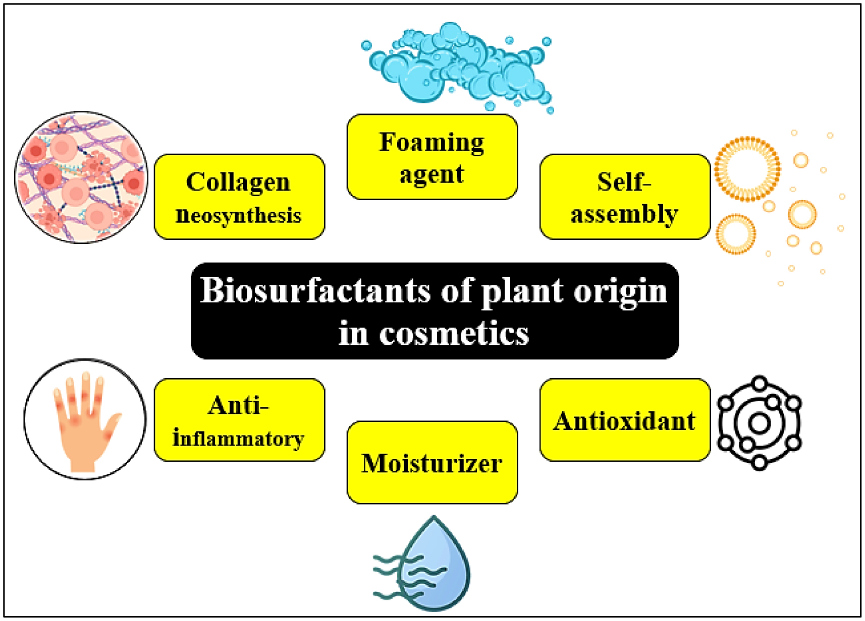 • Synthetic surfactants are often non-biodegradable and derived from petrochemical sources, which can harm the environment. In contrast, natural surfactants, also known as biosurfactants (BSs), are typically sourced from microorganisms, plants, or animals and are generally nontoxic and biodegradable, which minimizes their ecological impact and enhances their environmental biocompatibility. Among these biomolecules, plant-derived BSs (PdBSs), particularly saponins, are the best-known members that are abundantly found in nature and traditionally have been used as emulsifiers and detergents. Their favorable physicochemical and biological properties suggest significant potential for biomedical applications. Optimizing plant resource utilization and developing commercial formulations of PdBSs could support global sustainability efforts. Furthermore, PdBSs hold great promise for scientific and commercial applications in skincare and other cosmeceutical products. In this review, we examined the potential bioactivities of PdBSs, particularly saponins, as valuable ingredients for the cosmetic industry and skincare products to promote eco-friendly practices in the cosmeceutical sector.