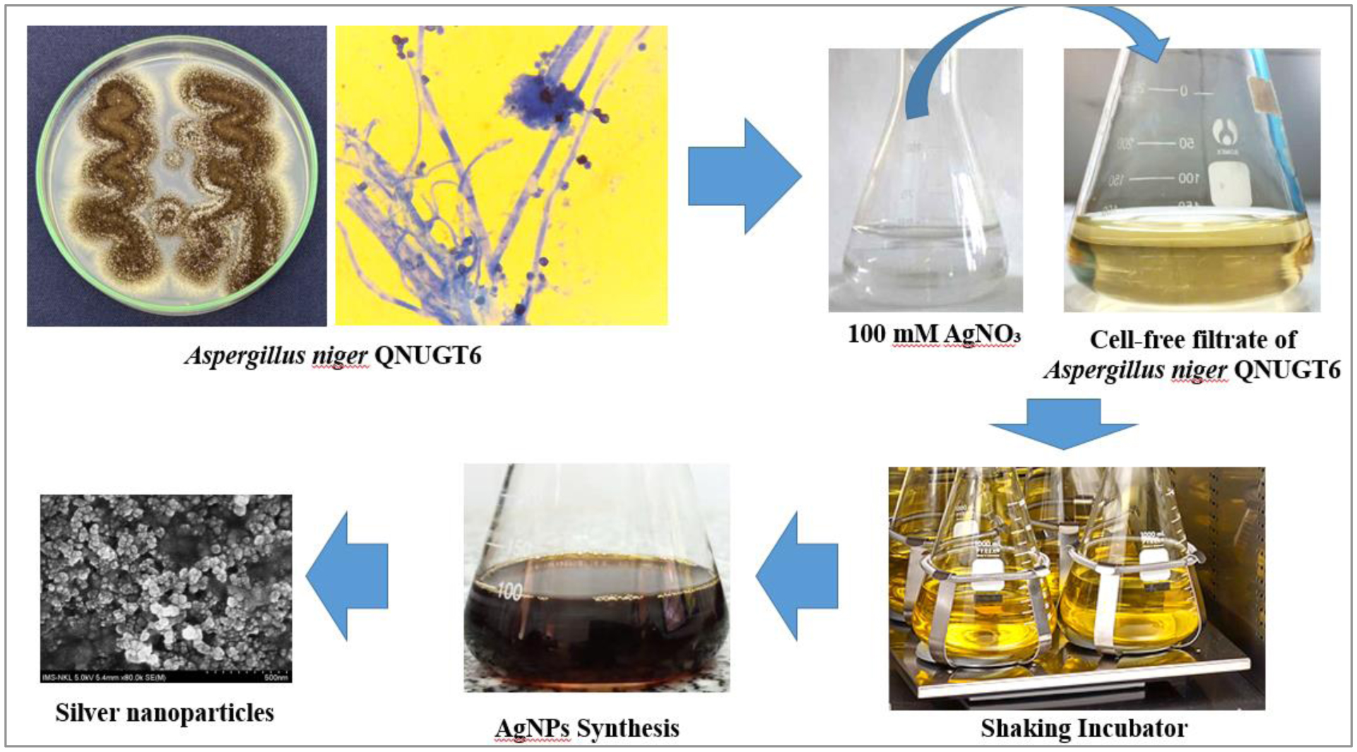 Hieu HN, Trang DTH, Hien VTT, et al. (2022) Microorganism-mediated green synthesis of silver nanoparticles using Aspergillus niger and Bacillus megaterium. Dig J Nanomater Bios 17: 359-367. https://doi.org/10.15251/DJNB.2022.171.359
