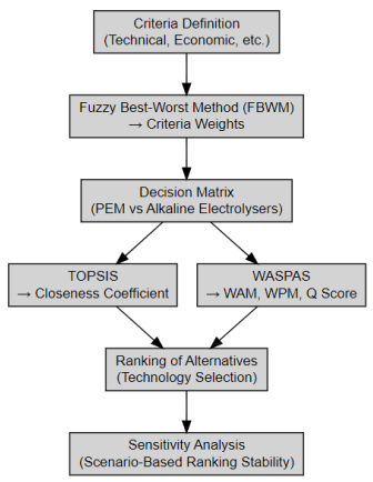 Citation: Leila Bekrit, Chakib Seladji. A multi-criteria techno-economic evaluation of PEM and Alkaline electrolyzers for green hydrogen production using fuzzy BWM, TOPSIS, and WASPAS[J]. Clean Technologies and Recycling, 2026, 6(1): 56-74. doi: 10.3934/ctr.2026003