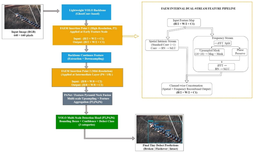 Citation: Christopher D. Naya, Elvis Twumasi, Eliel Keelson, Abdul-Majid Issah Malori. A lightweight frequency-aware enrichment module (FAEM) architecture for tiny insulator defect detection[J]. AIMS Electronics and Electrical Engineering, 2026, 10(2): 205-239. doi: 10.3934/electreng.2026009