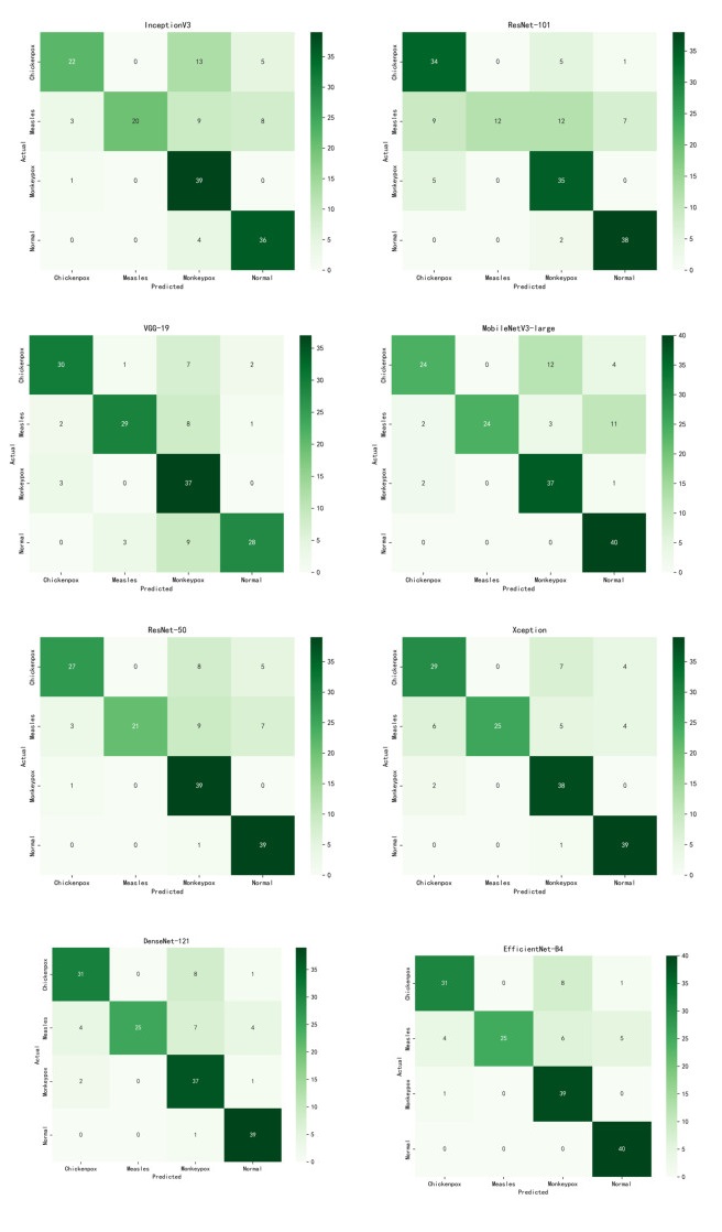 J. Deng, J. Liu, C. Kong, B. Zang, Y. Hu, M. Zou, Using novel deep learning models for rapid and efficient assistance in monkeypox screening from skin images, Front. Med., 11 (2024), 1443812. https://doi.org/10.3389/fmed.2024.1443812 doi: 10.3389/fmed.2024.1443812