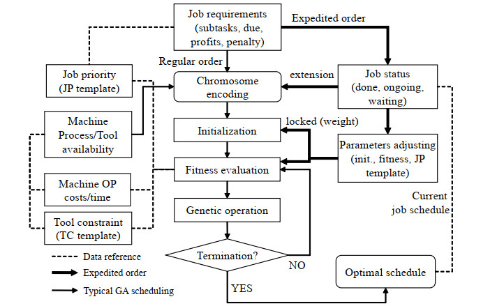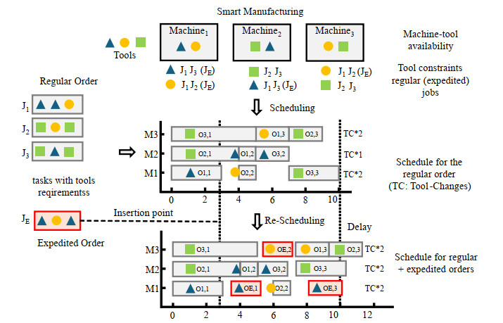 Citation: Yi-Han Chen, Hsi-Wen Wang, Chiung-Hui Tsai, Chih-Hung Wu. A genetic algorithm for tool-constrained scheduling with dynamic expedited orders in smart manufacturing[J]. Journal of Industrial and Management Optimization, 2026, 22(1): 182-213. doi: 10.3934/jimo.2026007