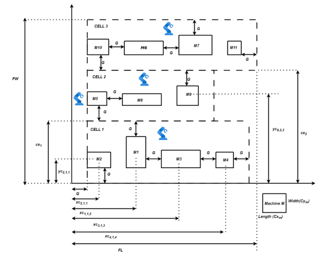K. Forghani, M. Mohammadi, V. Ghezavati, Integrated cell formation and layout problem considering multi- row machine arrangement and continuous cell layout with aisle distance, Int. J. Adv. Manuf. Technol., 78 (2015), 687–705. https://doi.org/10.1007/s00170-014-6652-3 doi: 10.1007/s00170-014-6652-3