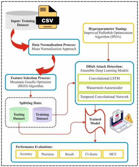 Citation: Hend Khalid Alkahtani, Mohammed Baihan, MohammedBurhanur Rehman, Randa Allafi, Sultan Almutairi, Ibrahim Zalah, Nouf Atiahallah Alghanmi, Mohammed Mujib Alshahrani. Mitigating DDoS attacks through ensemble learning models integrated with two-tier heuristic optimisation techniques for effective cyber defence[J]. AIMS Mathematics, 2025, 10(12): 30068-30108. doi: 10.3934/math.20251322