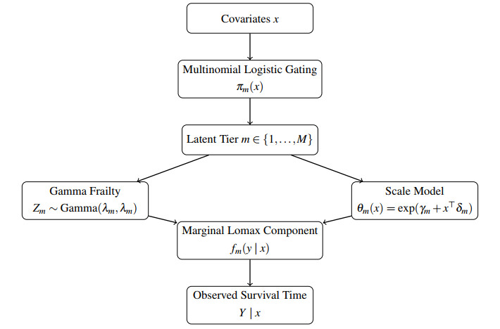 Citation: Mohieddine Rahmouni. Frailty-Augmented Logistic-Weighted Lomax Mixture regression for survival analysis[J]. AIMS Mathematics, 2026, 11(3): 6329-6349. doi: 10.3934/math.2026261