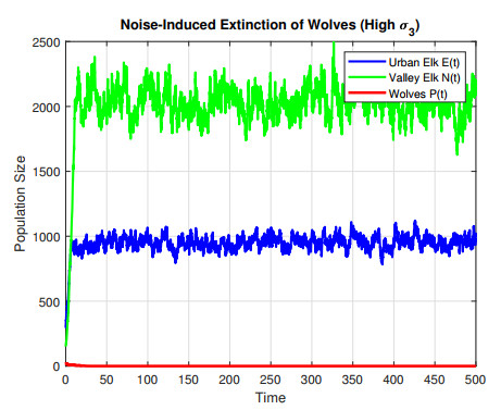 Citation: Yousef Alnafisah, Moustafa El-Shahed. Stochastic dynamics of an elk–wolf system with inter-regional movement[J]. AIMS Mathematics, 2026, 11(3): 6400-6419. doi: 10.3934/math.2026264