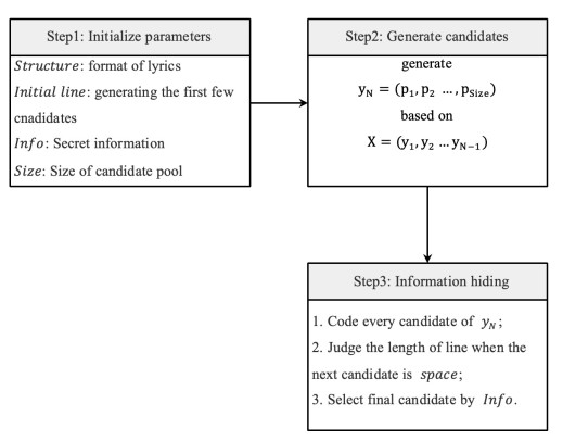 Citation: Yongju Tong, YuLing Liu, Jie Wang, Guojiang Xin. Text steganography on RNN-Generated lyrics[J]. Mathematical Biosciences and Engineering, 2019, 16(5): 5451-5463. doi: 10.3934/mbe.2019271