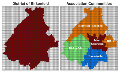In this study, we focus on modeling the local spread of COVID-19 infections. As the pandemic continues and new variants or future pandemics can emerge, modelling the early stages of infection spread becomes crucial, especially as limited medical data might be available initially. Therefore, our aim is to gain a better understanding of the diffusion dynamics on smaller scales using partial differential equation (PDE) models. Previous works have already presented various methods to model the spatial spread of diseases, but, due to a lack of data on regional or even local scale, few actually applied their models on real disease courses in order to describe the behaviour of the disease or estimate parameters. We use medical data from both the Robert-Koch-Institute (RKI) and the Birkenfeld district government for parameter estimation within a single German district, Birkenfeld in Rhineland-Palatinate, during the second wave of the pandemic in autumn 2020 and winter 2020–21. This district can be seen as a typical middle-European region, characterized by its (mainly) rural nature and daily commuter movements towards metropolitan areas. A basic reaction-diffusion model used for spatial COVID spread, which includes compartments for susceptibles, exposed, infected, recovered, and the total population, is used to describe the spatio-temporal spread of infections. The transmission rate, recovery rate, initial infected values, detection rate, and diffusivity rate are considered as parameters to be estimated using the reported daily data and least square fit. This work also features an emphasis on numerical methods which will be used to describe the diffusion on arbitrary two-dimensional domains. Two numerical optimization techniques for parameter fitting are used: the Metropolis algorithm and the adjoint method. Two different methods, the Crank-Nicholson method and a finite element method, which are used according to the requirements of the respective optimization method are used to solve the PDE system. This way, the two methods are compared and validated and provide similar results with good approximation of the infected in both the district and the respective sub-districts.