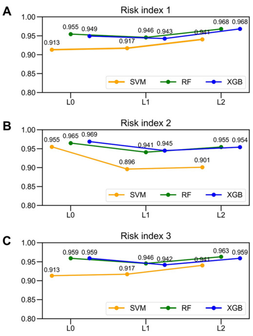COVID-19 is caused by the SARS-CoV-2 virus, which has produced variants and increasing concerns about a potential resurgence since the pandemic outbreak in 2019. Predicting infectious disease outbreaks is crucial for effective prevention and control. This study aims to predict the transmission patterns of COVID-19 using machine learning, such as support vector machine, random forest, and XGBoost, using confirmed cases, death cases, and imported cases, respectively. The study categorizes the transmission trends into the three groups: L0 (decrease), L1 (maintain), and L2 (increase). We develop the risk index function to quantify changes in the transmission trends, which is applied to the classification of machine learning. A high accuracy is achieved when estimating the transmission trends for the confirmed cases (91.5–95.5%), death cases (85.6–91.8%), and imported cases (77.7–89.4%). Notably, the confirmed cases exhibit a higher level of accuracy compared to the data on the deaths and imported cases. L2 predictions outperformed L0 and L1 in all cases. Predicting L2 is important because it can lead to new outbreaks. Thus, this robust L2 prediction is crucial for the timely implementation of control policies for the management of transmission dynamics.