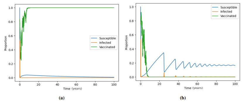 Citation: Andras Balogh, Tamer Oraby. Stochastic games of parental vaccination decision making and bounded rationality[J]. Mathematical Biosciences and Engineering, 2025, 22(2): 355-388. doi: 10.3934/mbe.2025014