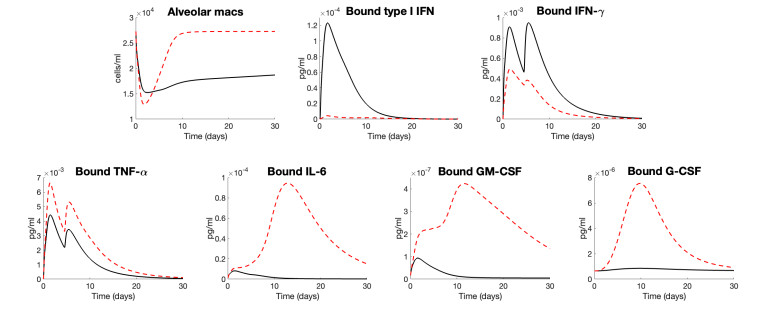 C. Byrne, J. T. Schiffer, Ensemble modeling of SARS-CoV-2 immune dynamics in immunologically naïve rhesus macaques predicts that potent, early innate immune responses drive viral elimination, Front. Immunol., 15 (2024), 1426016. https://doi.org/10.3389/fimmu.2024.1426016 doi: 10.3389/fimmu.2024.1426016