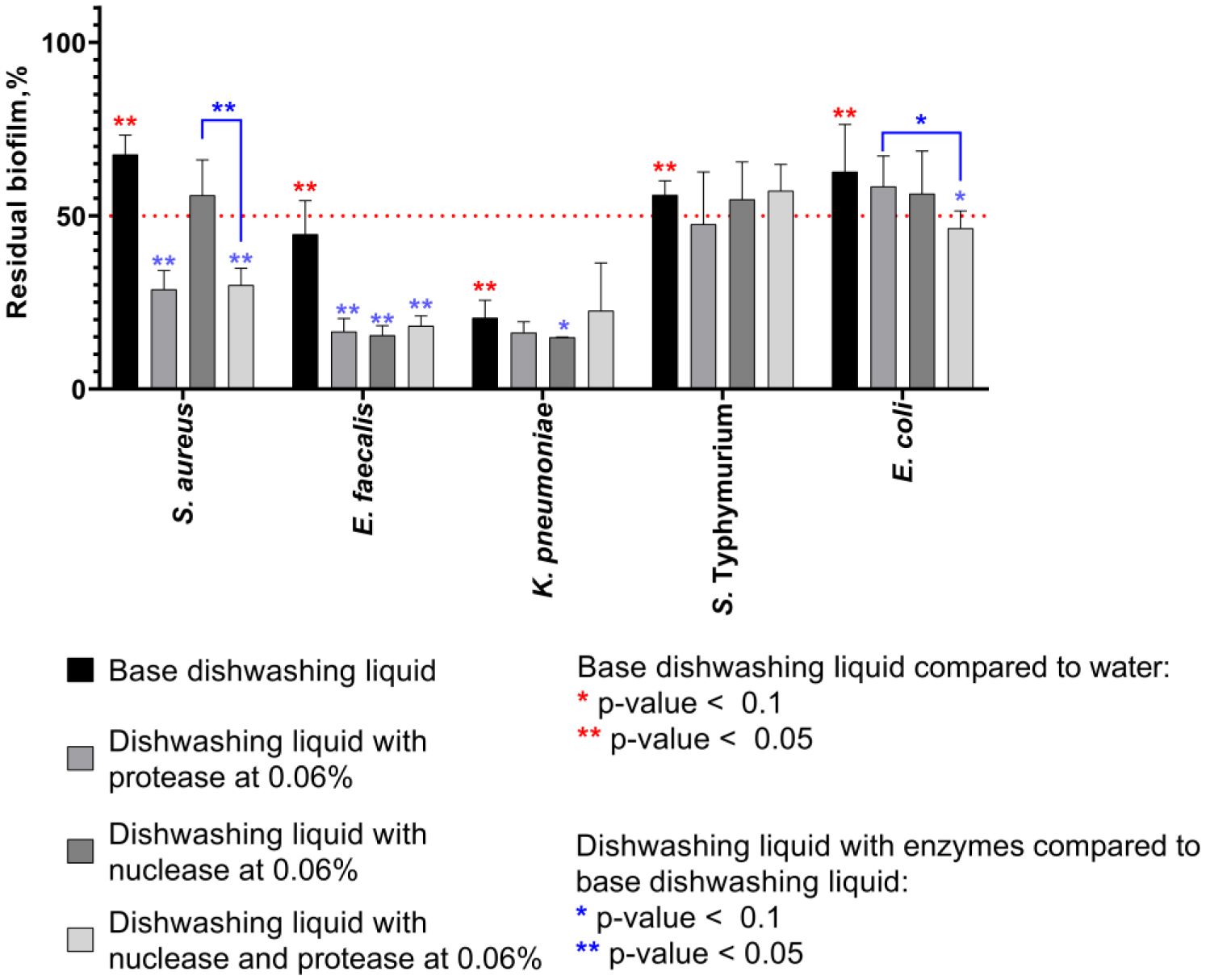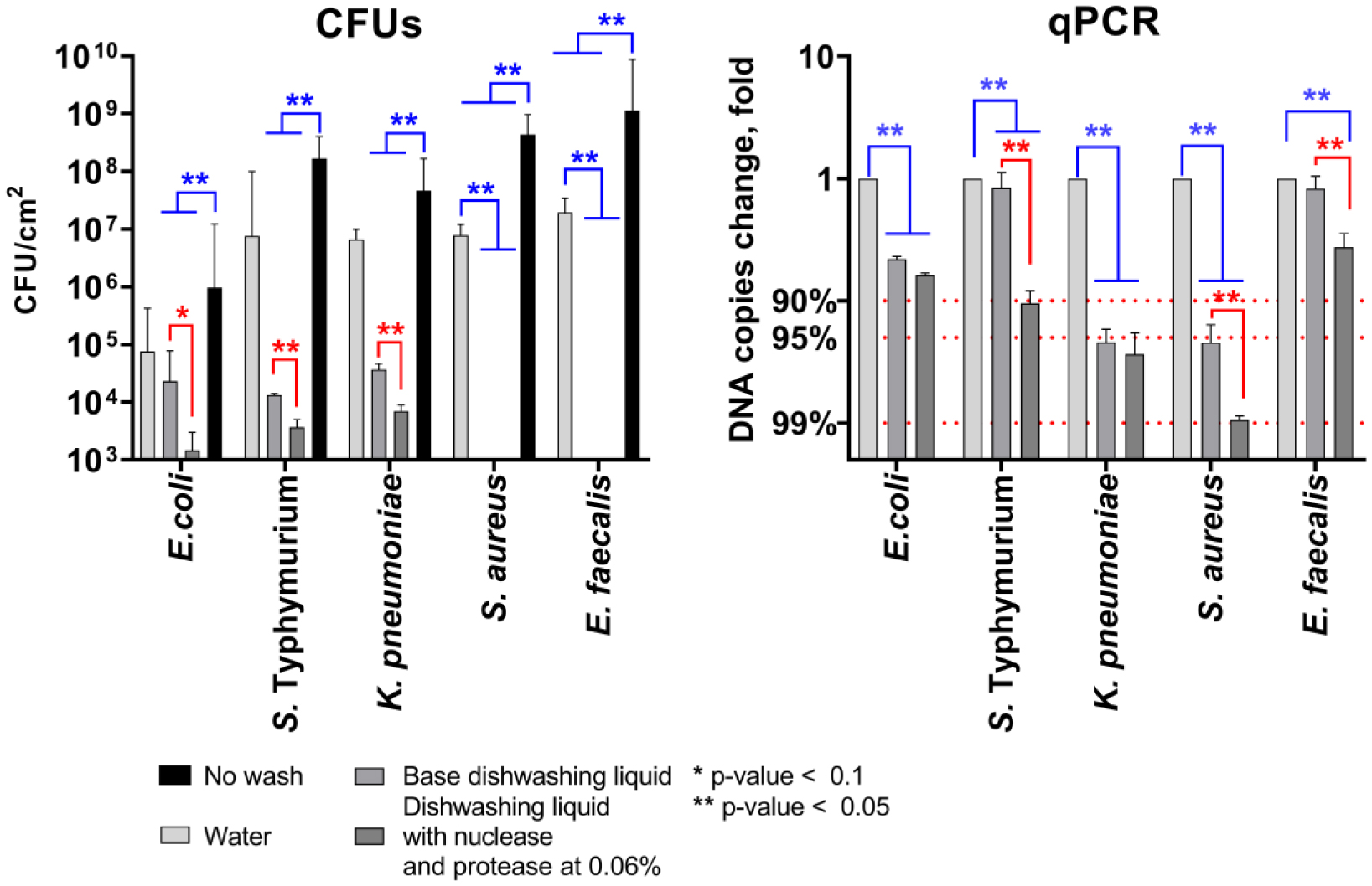 Citation: Lyudmila Ayzatullina, Sofia Kolyshkina, Elizaveta Patronova, Viktor Filatov, Iva Zadorina, Maya Kharitonova, Mikhail Bogachev, Airat Kayumov. Dishwashing liquids with nuclease and protease: An improved biocompatible solution for the removal of adherent bacteria from fruits and vegetables[J]. AIMS Microbiology, 2025, 11(4): 1101-1118. doi: 10.3934/microbiol.2025048