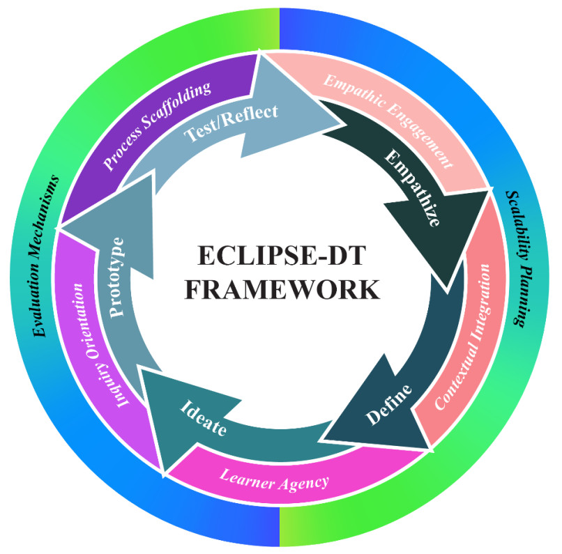 This study presents a dual-method systematic review synthesizing global research on implementing design thinking (DT) in science and integrated STEM/STEAM education between 2011 and 2024. Combining bibliometric analysis of 113 Scopus-indexed publications with a systematic literature review (SLR) of 40 empirical studies, this study examines trends, instructional contexts, theoretical frameworks, competencies, challenges, and future directions in DT pedagogy. The bibliometric results revealed a sharp rise in publications post-2018, with the United States, China, and Australia emerging as leading contributors. Citation analyses highlighted key authors, journals, and collaboration patterns, confirming DT's growing scholarly legitimacy and pedagogical relevance. The SLR findings demonstrated that DT is most commonly implemented using adapted versions of the Stanford d.school model, operationalized through empathy-driven tools, inquiry-based tasks, and iterative prototyping. While DT fosters a broad range of cognitive, creative, and socio-emotional competencies, its implementation is often hindered by teacher readiness, curriculum rigidity, and insufficient assessment mechanisms. To address these gaps, the study proposes the ECLIPSE-DT Framework, a theoretically grounded, empirically informed model comprising seven interconnected components: empathic engagement, contextual integration, learner agency, inquiry orientation, process scaffolding, scalability planning, and evaluation mechanisms. This framework provides a pragmatic and research-based structure to guide the effective integration of DT into science education, aligning creativity, empathy, and sustainability with curricular demands. The study outlines future research and policy recommendations, emphasizing the need for more profound theoretical articulation, interdisciplinary integration, and scalable implementation of DT-based pedagogies across educational levels.