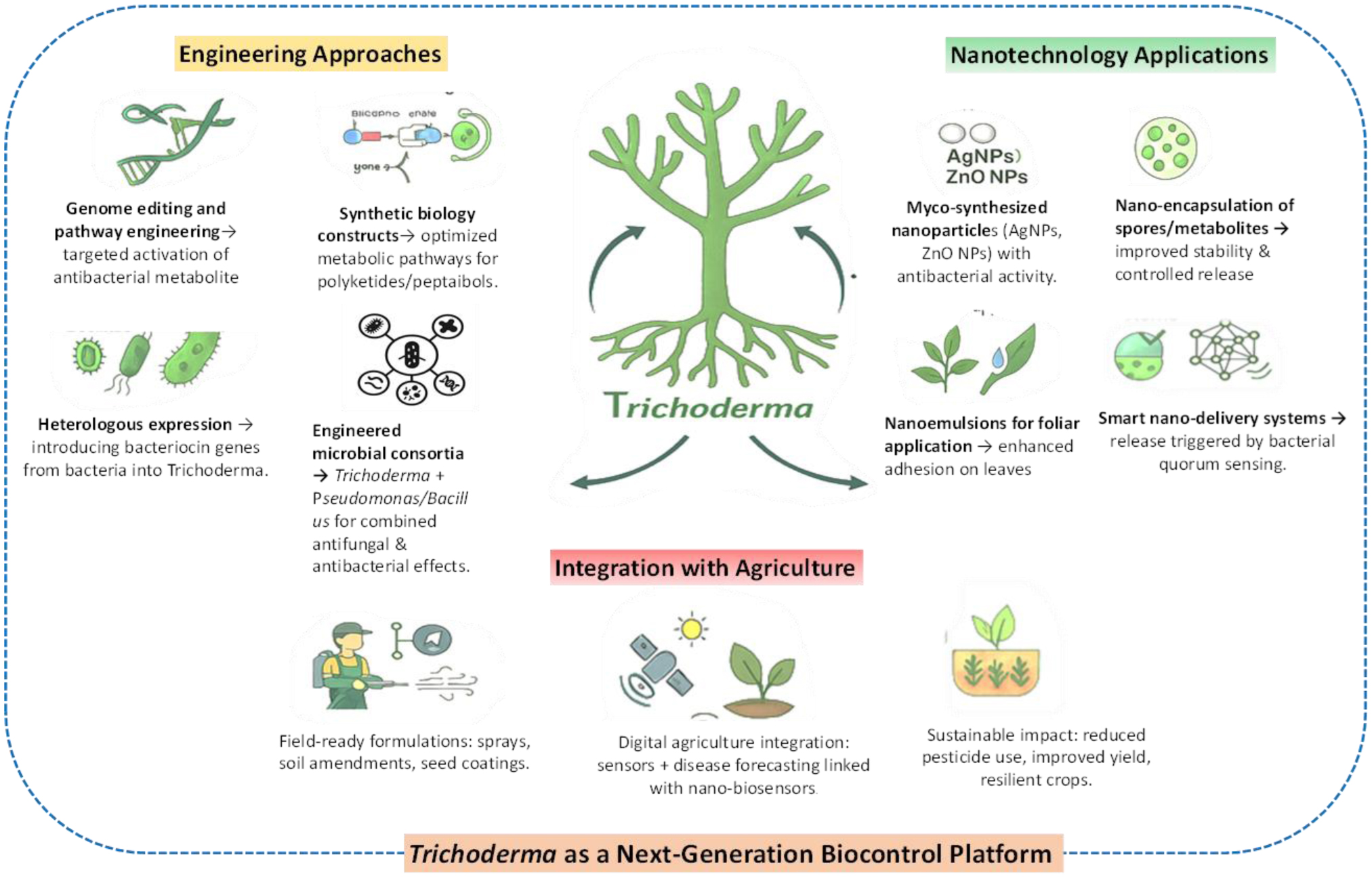 [156] Tomah AA, Zhang Z, Alamer ISA, et al. (2023) The potential of Trichoderma-mediated nanotechnology application in sustainable development scopes. Nanomaterials 13: 2475. https://doi.org/10.3390/nano13172475