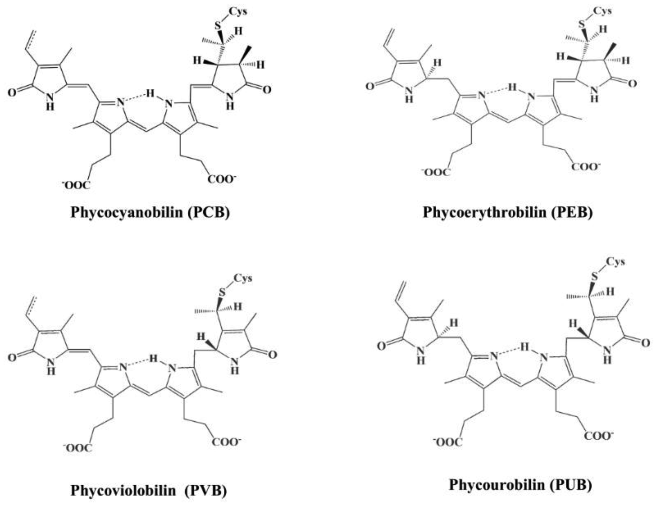 Dagnino-Leone J, Figueroa CP, Castañeda ML, et al. (2022) Phycobiliproteins: Structural aspects, functional characteristics, and biotechnological perspectives. Comput Struct Biotec J 20: 1506-1527. https://doi.org/10.1016/j.csbj.2022.02.016