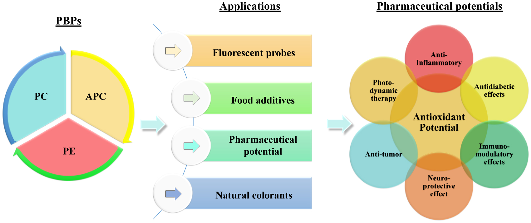 Singh AP, Gupta A, Jaiswal J, et al. (2025) Phycobiliproteins: Phycocyanin, allophycocyanin, and phycoerythrin. Microalgae and one health . Academic Press 171-186. https://doi.org/10.1016/B978-0-443-22080-7.00033-8